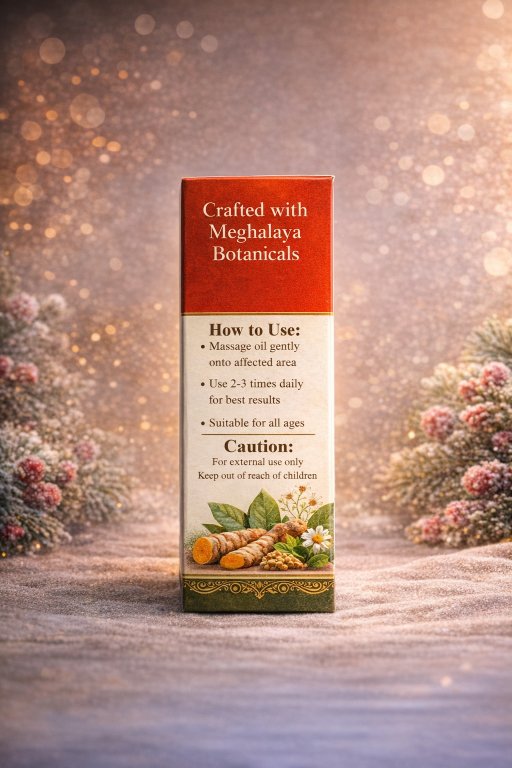Infused with traditional healing botanicals from the cold, lush regions of Meghalaya, this oil improves micro-circulation and protects sensitive skin exposed to harsh, cold weather.